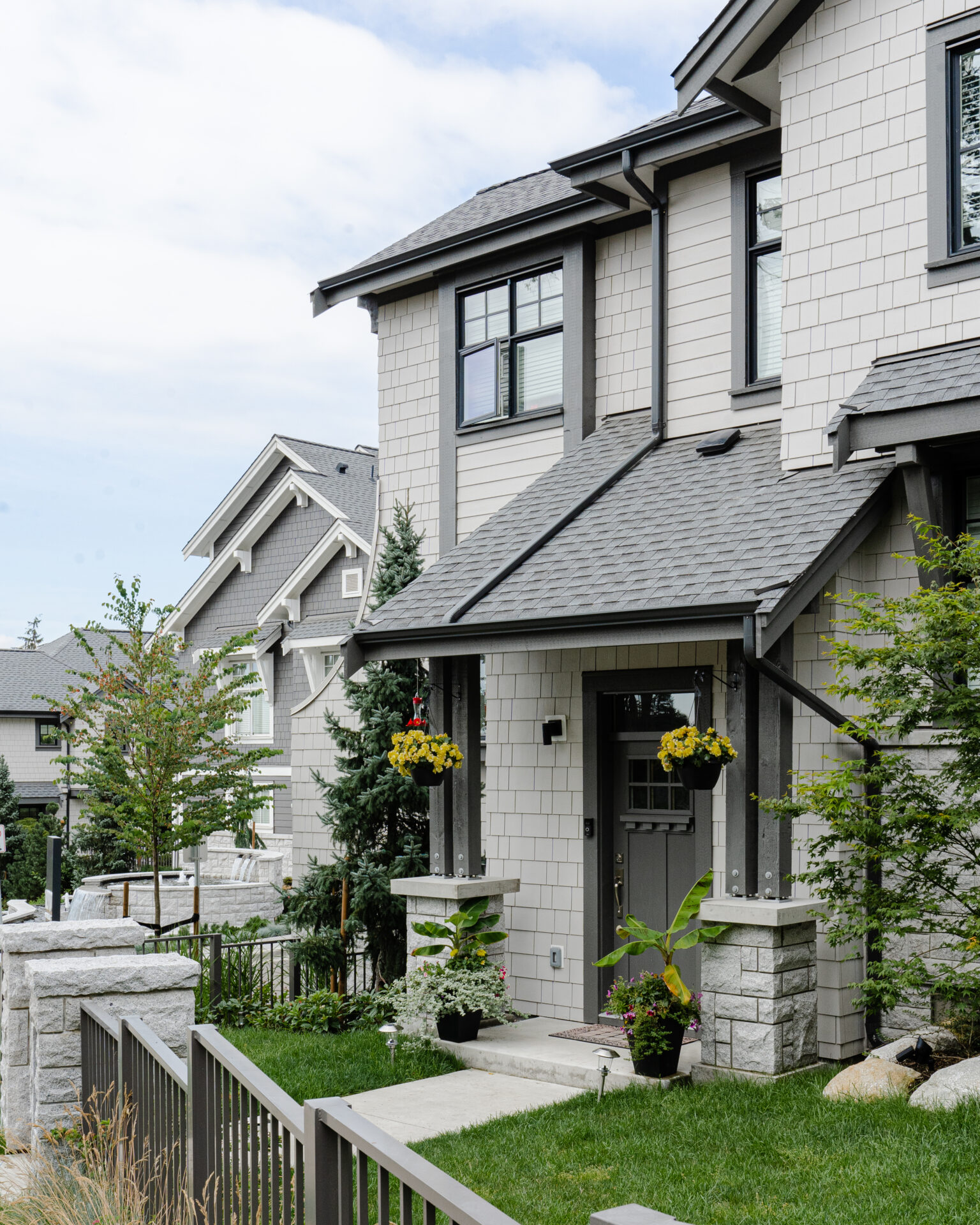 We then framed these essential structures with curated softscape designs, ensuring that adjacent garden beds were thoughtfully planted to complement the architecture and create a cohesive, welcoming transition from the community grounds to each private home.